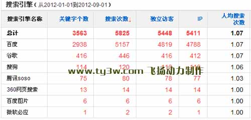 關鍵詞來源統計分析 太原某站 2012年前8個月的搜索統計結果